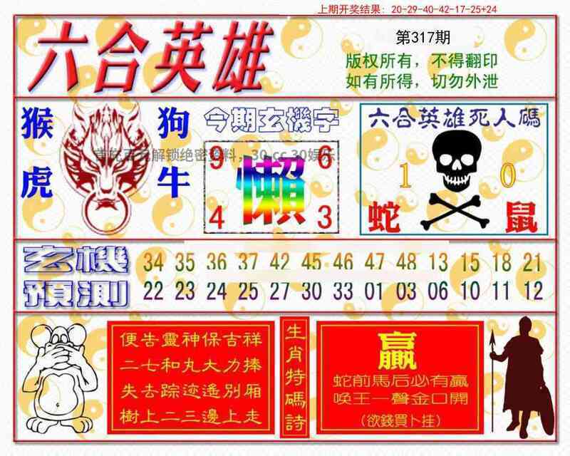 318期:电脑推算/正版解一肖输精光/玄机解一肖/六合皇五字